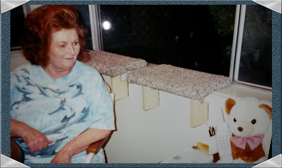 We were always giggling, and we stopped laughing a moment, then I grabbed my camera and take a photo of my cute Mom...just let Mom do what she always did...joke around, and I got a few photos like that. She was so funny. Mom & I always did this cute thing...I would say, "Good-by Barbara...", and Mom would always come back saying, '"Good-bye, Barbara."' Then I would tell her when the camera was ready, "Say hi, Barbara...", and Mom would say, '"Hi, Barbara."' Just something we did as a little funny. Love you, Mom.