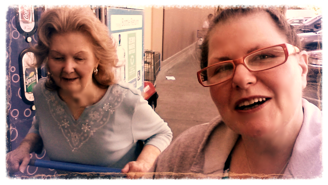 2016-2017, she still did her own driving, shopping, and was very independent until June of 2016. Here's Mom & I at Walmart. We were still giggling from when we were in the car driving...as was pushing her cart, I said to her smiling & giggling, "Washington, huh? Funny, Mom..." then she had this little smile.