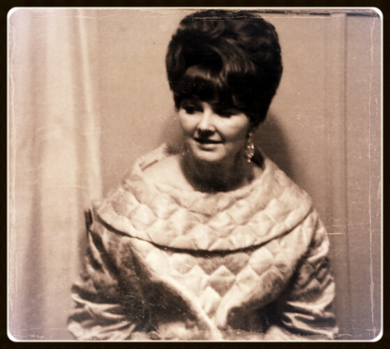 Mom just got her "Beehive Hair Style" done earlier that day, and she wanted a photo. Back then, the camera to use for a quick photograph was the Black & White Polaroid Camera. That missed out on color, but it still holds the beauty of Mom. Mom had a dream of being a Fashion Designer. Here, Grandma was right there getting ready to take the photo, and Mom said she wanted to switch her "Golden Robe" around to put the collar in front with no buttons. Well, as Grandma was a Specialty Tailor, she thought this was a little original; questioning Mom about her choice, but she took the photo and now we have it to talk about it. So here's the first photo...the one where Mom had the front of her "Designer Dress" - as no one was supposed to know - she's really wearing a beautiful robe...I remember this robe, by the way. It was very beautiful.